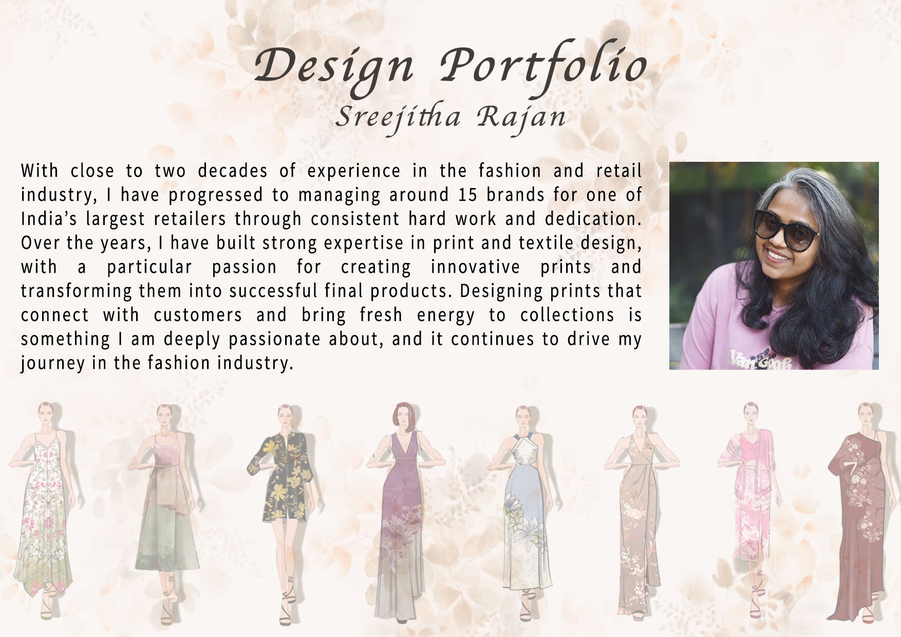 Sreejitha is a creative force who brings designs to life with versatile prints and patterns. With enriched experience capturing the pulse of the market, she crafts art that connects deeply, evoking joy and individuality. A true partner, a joy to collaborate with.